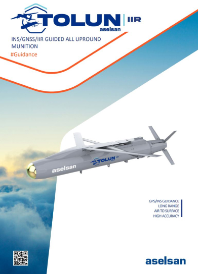 TOLUN-IIR is a GPS/INS/IIR guidance bomb which has the capability of attacking targets within the range of 43 NM using its retarding diamond shaped canards. TOLUN-IIR is a guidance bomb which is high precision hit capabilities and low collateral damage within targets vicinity. TOLUN-IIR, in which the pilot is kept in the loop via POD, is a smart weapon systems through the integration of an Inertial Measurement Unit (IMU), a Global Positioning System (GPS) and an Infrared Seeker.