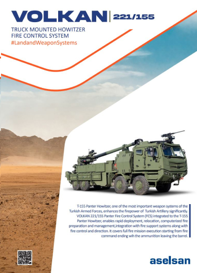 T-155 Panter Howitzer, one of the most important weapon systems of the Turkish Armed Forces, enhances the firepower of Turkish Artillery significantly. VOLKAN 221/155 Panter Fire Control System (FCS) integrated to the T-155 Panter Howitzer, enables rapid deployment, relocation, computerized fire preparation and management,integration with fire support systems along with fire control and direction. It covers full fire mission execution starting from fire command ending wih the ammunition leaving the barrel.