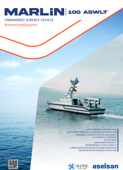 MARLİN 100 ASWLT is a new generation USV developed for AntiSubmarine Warfare (ASW). Its modular design architecture allows different ASW payload configurations. MARLİN 100 ASWLT is equipped with advanced communication and positioning systems; can operate uninterruptedly under Communication / GNSS denied environments.